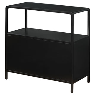 Amherst 2-door Radio Weave Cane Metal Accent Cabinet Black