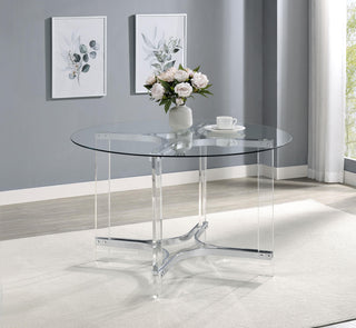 Keeling 47-inch Round Glass Top Acrylic Dining Table Chrome