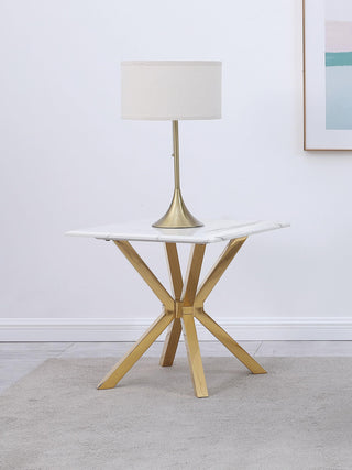 Visalia Faux Marble Top Stainless Steel End Table Gold