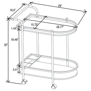 Derion 3-tier Rectangular Glass Shelf Metal Bar Cart Chrome