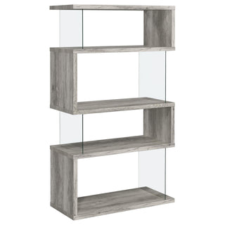 Emelle 63-inch 4-shelf Glass Panel Bookshelf Grey Driftwood