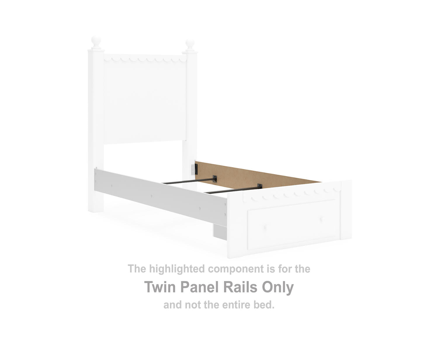 This set of twin panel rails is made with engineered wood (MDF/particleboard/plywood) and decorative laminate. Pairs with other items in the series to make a bed kit.