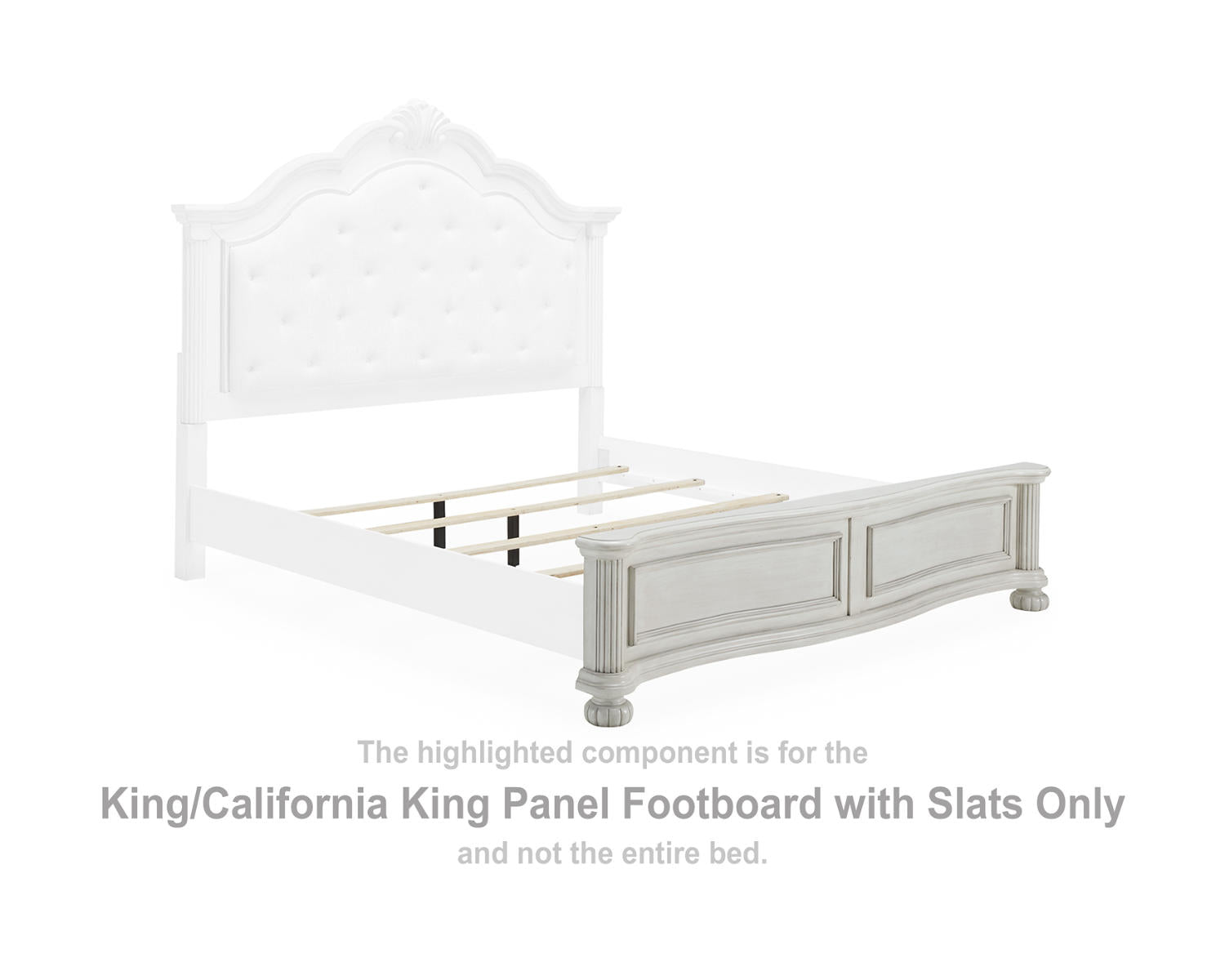 This king/California king panel footboard with slats is made with hardwood solids, veneer and MDF substrate with cast resin components. Pairs with other items in the series to make a bed kit.