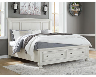Elegant, timeless furnishings take your bedroom to the next level. Nothing does that better than this queen panel storage bed. The antiqued white finish with a wonderful grain texture radiates sophistication, while the dark bronze-tone hardware adds an ornate touch to the handy storage drawers.