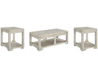 Take in the country fresh look of this occasional table set and reminisce of a simpler time. Its farmhouse style is evident in its stocky design with planked top/bottom shelf, unique triangle accents and relaxed white washed finish. You’ll love the casual feel and handcrafted look this ensemble brings to your living area. Plus, easy lift top feature accommodates eating or working in front of the television.