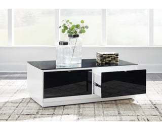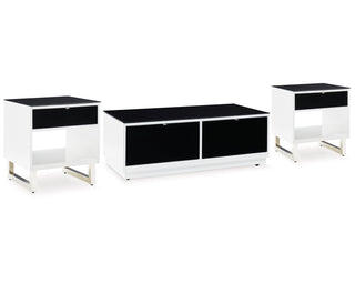 Combining a high-gloss white finish with a black glass tabletop, this occasional table package proves opposites really do attract. It's the perfect blend of modern style and functionality. With plenty of storage space, this set is a smart choice on so many levels.