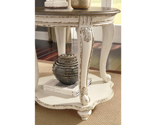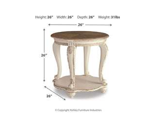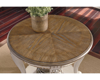 Elevating the art of traditional cottage styling, this round end table is sure to serve you beautifully for years to come. Antiqued two-tone aesthetic blends a chipped white with a distressed wood finished top for added charm. Classic cabriole legs and shapely lower shelf are a lovely twist. Decorative corbels add refinement.