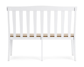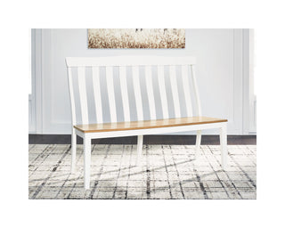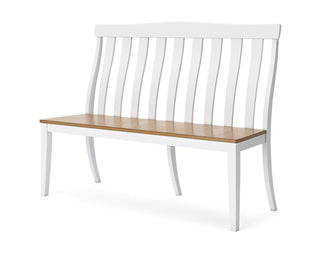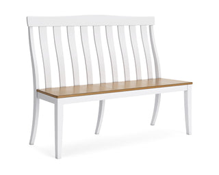 Casual style with substance. This double dining chair's two-tone finish of classic white and butcher block oak veneer adds a relaxed vibe to a delicious design. The curved shape of its bent slat-back frame offers a sense of modern farmhouse style, while the contoured seat adds comfort. Sit back and cozy up in charmingly fine fashion in your informal dining room or eat-in kitchen.
