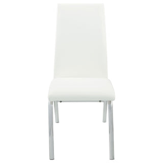 Elevate your dining space with this modern dining chair, featuring sleek white polyurethane upholstery that brings a crisp, clean look to any room. The chair’s gracefully curved backrest and seat offer both style and comfort, making it ideal for long dinners and casual gatherings alike. Supported by sturdy chrome metal legs, this chair has a contemporary flair that adds a polished touch to your dining area. Its minimalist design easily complements modern and contemporary decor styles, creating a versatile seating option for various settings. Enjoy a chic and functional piece that enhances the ambiance of your dining room.