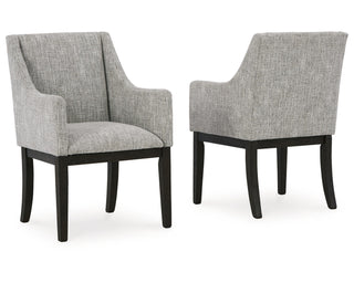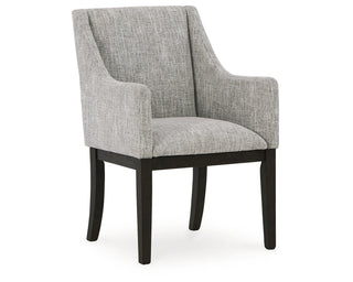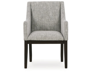 Dressed to thrill, this simply stunning host chair offers a high-design look at a down-to-earth price. Ultra sleek lines are accentuated with a dark waxy brown oak-tone finish that’s so easy on the eyes. Suitably upholstered in a tweed-like neutral fabric, the slope-arm design is tailor-made for comfort. Whether it's part of a dining arrangement or used as extra seating, it has a timeless look that’s made to last.