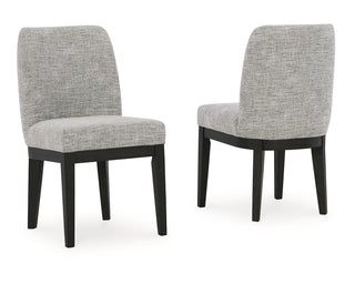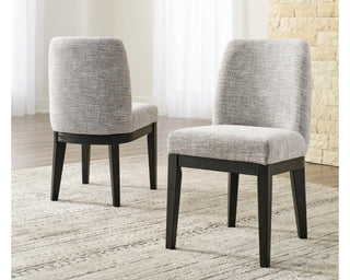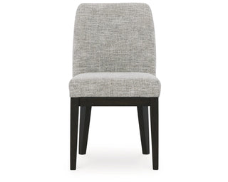 Dressed to thrill, this simply stunning armless dining chair offers a high-design look at a down-to-earth price. Ultra sleek lines are accentuated with a dark waxy brown oak-tone finish that’s so easy on the eyes. Suitably upholstered in a tweed-like neutral fabric, the softly contoured back design is tailor-made for comfort. Whether it's part of a dining arrangement or used as extra seating, it has a timeless look that’s made to last.