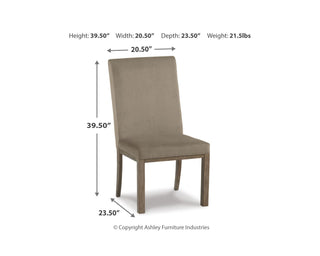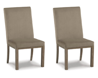 Casual lifestyle contemporary design. Made with hardwood solids, select oak veneer and engineered wood substrate. A blend of stains and glaze create a richly executed waxy gray finish. D983-25 rectangle dining table features a thick, reversed bevel edge and stylish double pedestal base. The side chair is made with solid wood frames, cushioned web seating and a light brown, velvety soft cover. The 64" long server offers large storage capacity with two double door cabinets, each with an an adjustable shelf inside. Large custom designed metal bar pulls and metal accents are finished in a light pewter coloration.