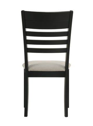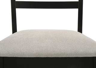 This dining group is the epitome of modern sophistication and functional elegance. The centerpiece is a sleek, rectangular table with a beautifully textured wood grain finish, offering a touch of rustic charm to its contemporary design. The table is complemented by a set of four ladder-back chairs and a versatile bench, all featuring a deep black frame that provides a striking contrast to the neutral, upholstered seats. The cushioned seating ensures comfort, while the bench adds flexibility and a communal feel, perfect for both family meals and entertaining guests. The overall design is enhanced by clean lines and a minimalist aesthetic, making this set a stylish focal point for any dining space.