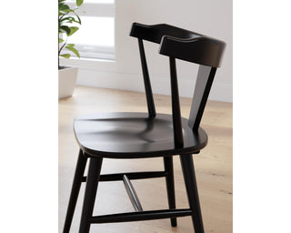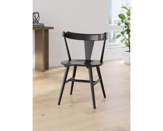 Casual lifestyle design with an Urban Vibe. Designed for small space dining areas but big on style. D501-25 rectangular dining table features a solid Acacia wood top with light natural wood finish and metal legs in a matte black powder coat finish for lasting durability. D501-02 dining chair has a classic wrap-around back design with simple tapered back slat and is made with solid hardwood.