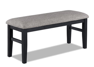Elevate your dining experience with this contemporary dining group, where modern design meets rustic charm. Crafted with a rich, dark finish, the spacious rectangular table offers ample room for both intimate dinners and festive gatherings. The subtle grain detailing on the table's surface adds depth and character, while the trestle base ensures stability and longevity. Complementing the table are the sleek, slat-back chairs, designed for comfort and style with their plush upholstered seats. The accompanying bench, upholstered in a neutral hue, provides versatile seating options and further enhances the ensemble's chic appeal.