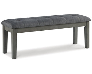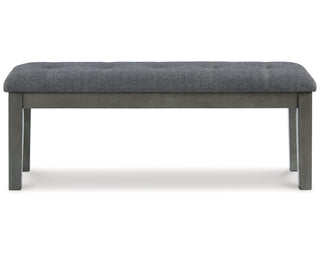 Cool and on-trend. This dining bench sports a two-tone gray look for a contemporary-yet-casual feel. The cushioned foam seat in a gray textural fabric pairs seamlessly with the antiqued gray finish, providing you with a super-stylish and versatile seating option.