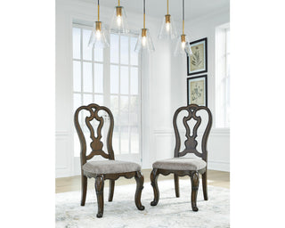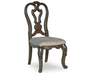 From its ornamental appliques to its large scale, this dining chair makes a bold statement. With shapely legs and a plush cushioned seat, the opulent piece wows with stunning style. The look is timeless. The feel? Right at home.