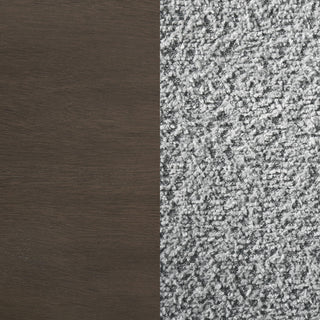 Elevate your dining space with this beautifully crafted dining chair, blending intricate detailing with luxurious comfort. The chair features a molded geometric design on the backrest, offering a striking visual appeal. Constructed from solid wood and embossed, this chair is finished in a dark brown hue, adding warmth to any dining room. The seat and front of the backrest are upholstered in a soft, textured grey fabric, providing both style and comfort. Whether used as a dining chair or an accent piece, this chair is sure to make a statement.