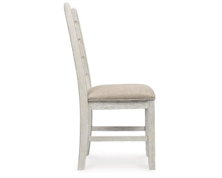 This dining chair invites you to raise the bar for small space living. An inspired choice for coastal chic or modern farmhouse settings, this comfortably cushioned chair sports a grayish white finish with rub through effect for timeworn appeal.