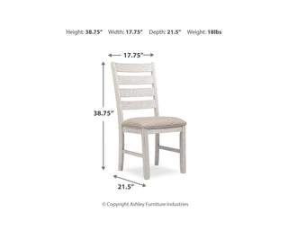 Made with Acacia veneers and select rubberwood solids, in a grayish white finish with rub through effect for a time worn appearance. Top is finished in a medium toned brown color with a planked effect with saw kerf distressing. Chair has a classic casual design with a tall ladder back look with simple features. Seat is covered in a light colored fabric cover. D394-32 pairs with 4 counter height stools. Built-in 8-bottle wine rack and open shelves. D394-024 cushioned saddle seat with a light textural polyester fabric. D394-113 barstool dimensions: 21"W x16"D x 24"H. Multi functional dining table features two convenient side drawers and a storage bin on each end for maximum use of space. Storage on the ends for maximum use of space. Finished in a trend right gray washed color with contrasting light oak colored top. Solid wood chair frames with cushioned seat in light gray woven polyester fabric. Piano style bench with under seat storage bin. D394-423 counter height dining set includes 6 stools and counter height leg table. Two-tone finish with a brown wood tone top contrasted with a grayish white with rubbed through effects.
