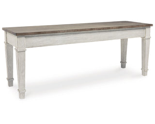 Made with Acacia veneers and select rubberwood solids, in a grayish white finish with rub through effect for a time worn appearance. Top is finished in a medium toned brown color with a planked effect with saw kerf distressing. Chair has a classic casual design with a tall ladder back look with simple features. Seat is covered in a light colored fabric cover. D394-32 pairs with 4 counter height stools. Built-in 8-bottle wine rack and open shelves. D394-024 cushioned saddle seat with a light textural polyester fabric. D394-113 barstool dimensions: 21"W x16"D x 24"H. Multi functional dining table features two convenient side drawers and a storage bin on each end for maximum use of space. Storage on the ends for maximum use of space. Finished in a trend right gray washed color with contrasting light oak colored top. Solid wood chair frames with cushioned seat in light gray woven polyester fabric. Piano style bench with under seat storage bin. D394-423 counter height dining set includes 6 stools and counter height leg table. Two-tone finish with a brown wood tone top contrasted with a grayish white with rubbed through effects.