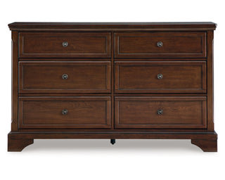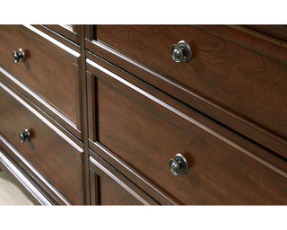The traditional design of this dresser has a timeless look that adds visual appeal to your bedroom, while its functionalism is equally impressive. There is lots of room for clothes and other essentials in six drawers with a warm brown cherry finish. Creating a beautiful focal point, the drawer fronts are enhanced by round metal knobs in a dark bronze tone for a casual aesthetic.