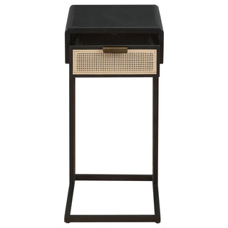 Amherst 1-drawer Radio Weave Cane Metal Side Table Black