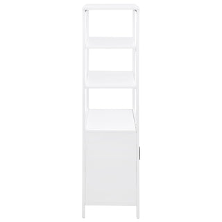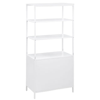 Elevate your storage solutions with this stylish two-door tall accent cabinet, expertly crafted from durable metal for long-lasting support. The sleek powder-coated finish adds a modern touch while providing excellent resistance to scratches and wear. The polyethylene (PE) rattan door fronts bring a hint of coastal charm, adding natural texture to your decor. With three tiers of open shelving, this cabinet offers ample space for displaying decor, books, or essentials, while the enclosed cabinet with a fixed shelf provides additional storage for items you want neatly tucked away. This versatile piece seamlessly combines function with style.