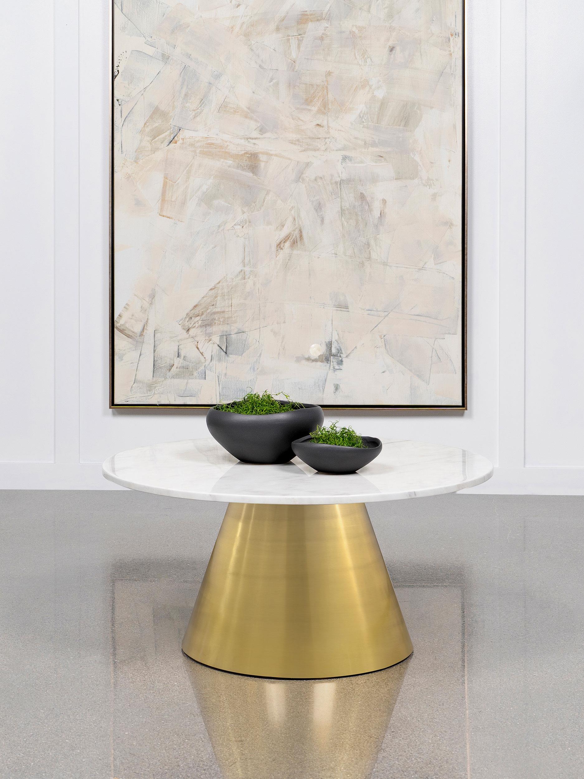 Avon Round Marble Top Stainless Steel Coffee Table White