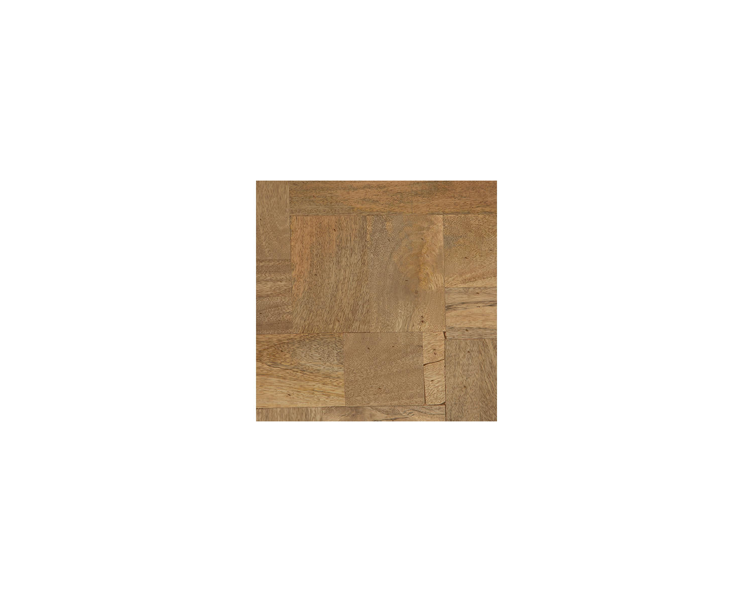 With its clean lines and sense of simplicity, this console table is a master study in modern style. We love how the contrasting patchwork patterned post and the dark brown finish captivate the eye. The lower shelf enhances the open and airy design and provides great display space.