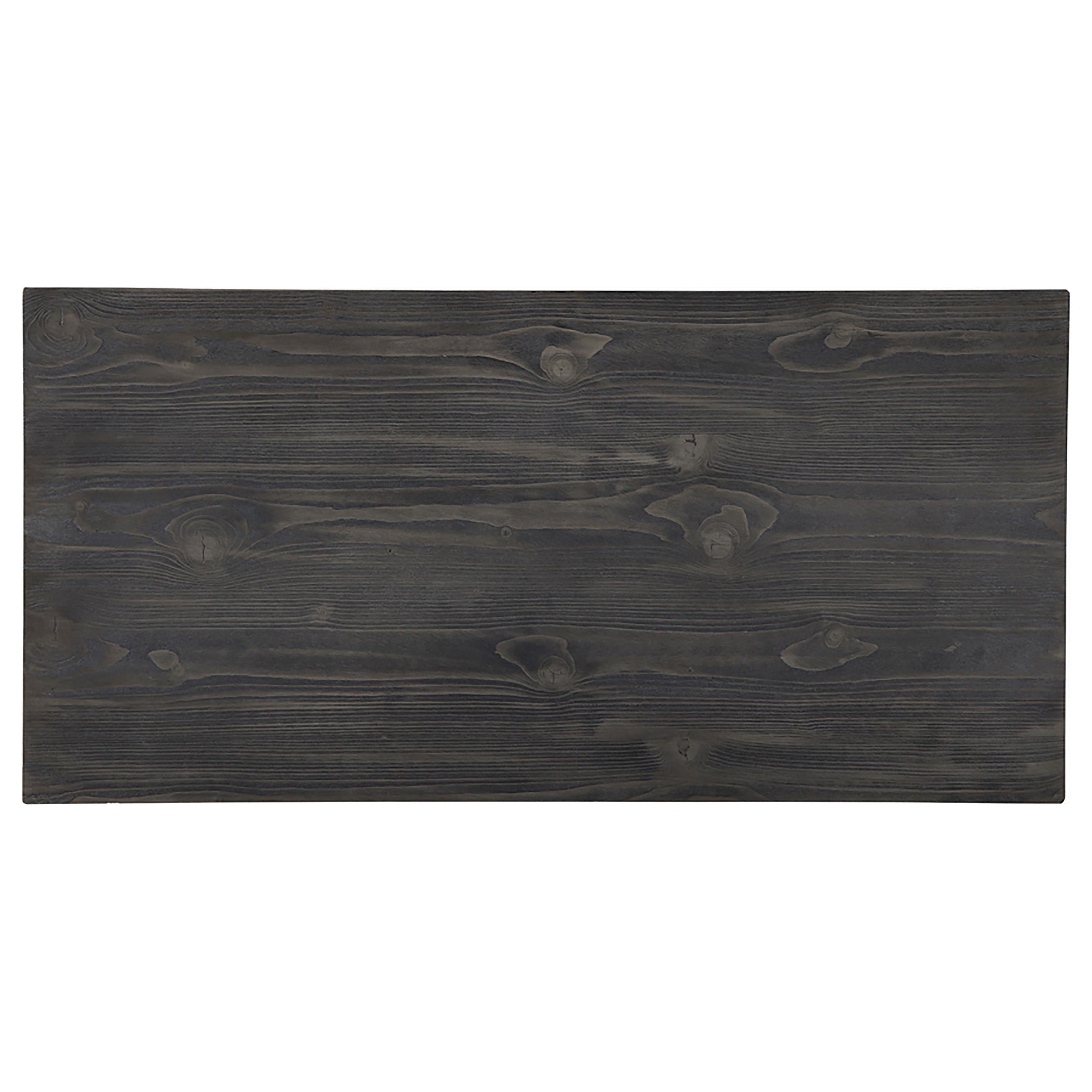 This coffee table blends clean lines with a spacious, functional design. The rectangular tabletop provides ample room for decor or serving essentials, making it perfect for gatherings. A slatted lower shelf with a checkerboard-inspired design offers extra storage and a creative touch. Crafted from durable engineered wood with pine veneer, it features a grey finish with wood grain accents, adding rustic charm to any living room. Tapered legs complete the timeless appeal of this versatile piece.