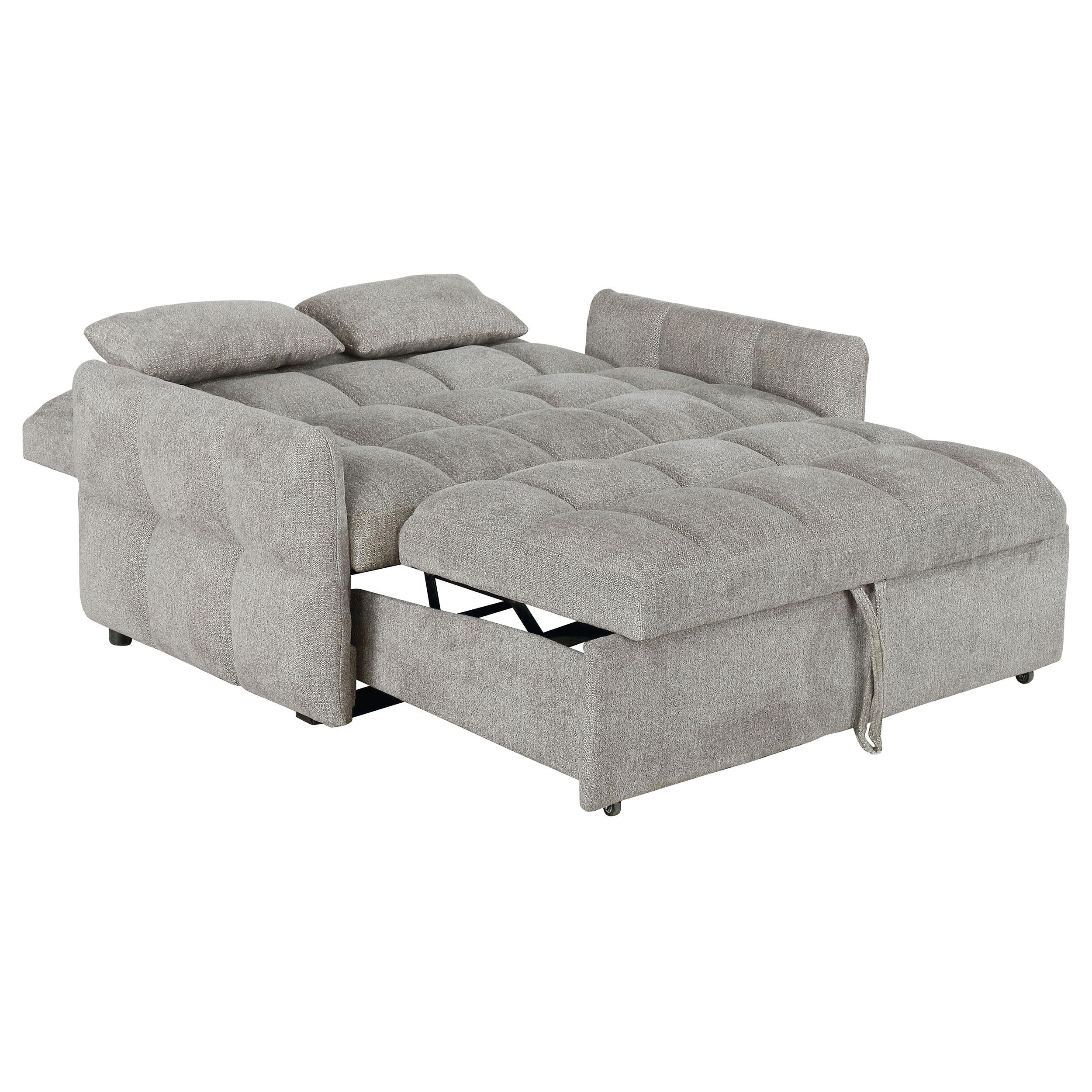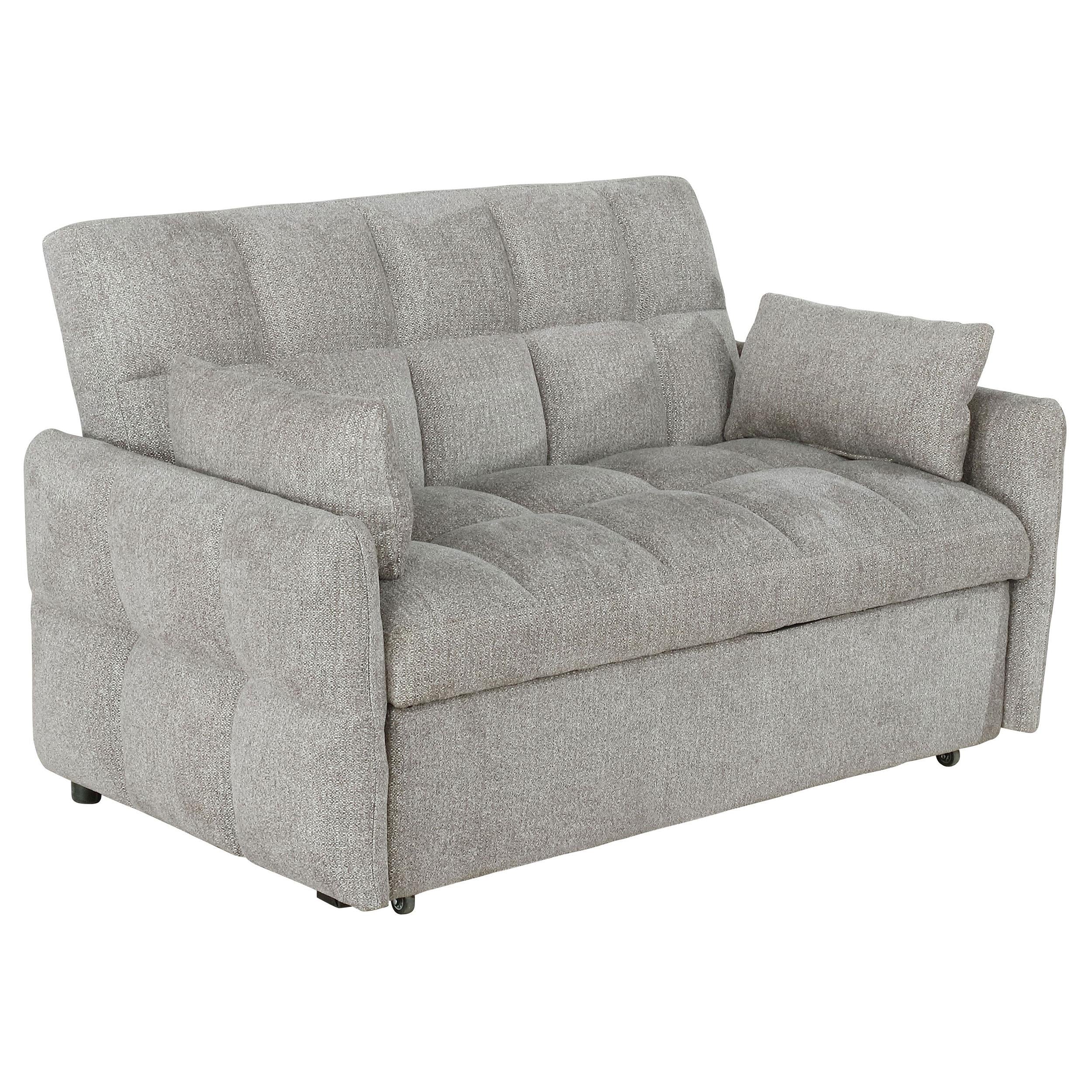 Get the best of both worlds for snoozing and lounging with this sleeper sofa. All over-tufting enhances the comfort of the chenille fabric. Slim arms and a rounded rectangular backrest give it a modern flair as a stylish sofa. Fold down the backrest to easily create sleeping space for guests. A pull-out sleeper mechanism makes this an easy-to-use upgrade for a living room or guest bedroom.