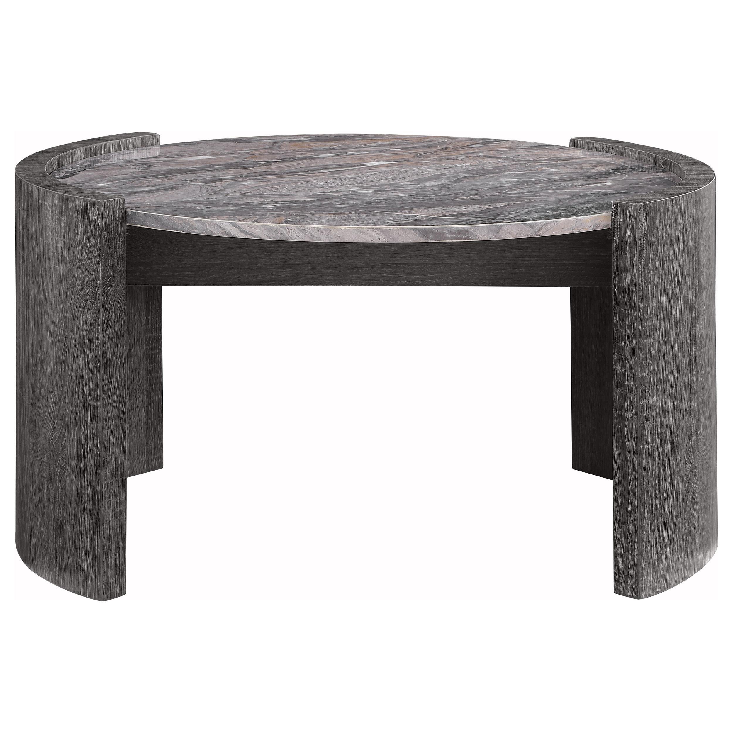 Gladstone Round Faux Marble Top Coffee Table Distressed Grey