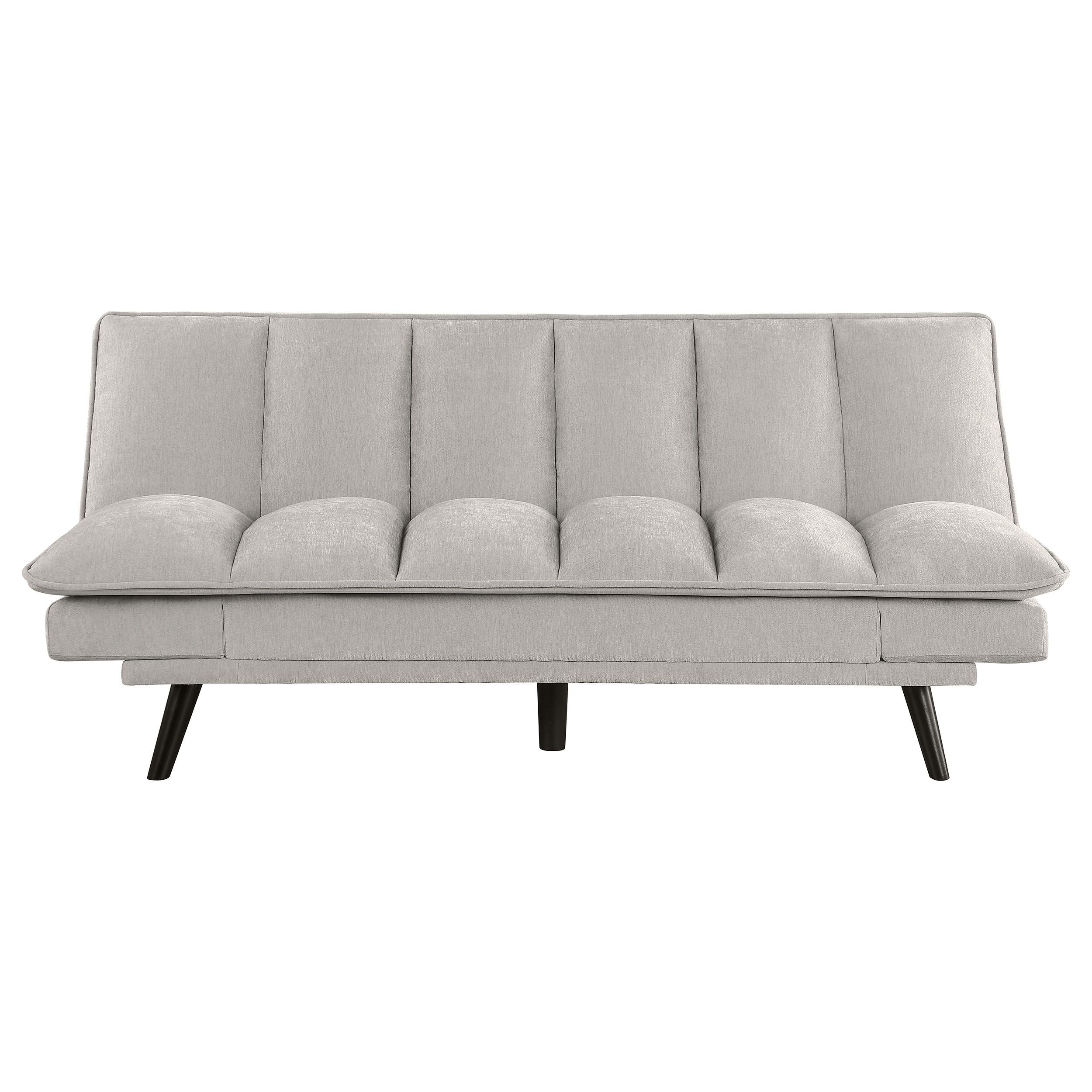 Versatility reigns in a modern sofa bed. Soft upholstery complements perfectly, bringing inviting style to a convertible design. It goes from sofa to bed with a lay-flat mechanism, perfect for a multi-functional space like a home office or compact living room. Tufting adds a sense of structure to the design. Splayed legs receive a black finish, offering a chic look against lighter upholstery.