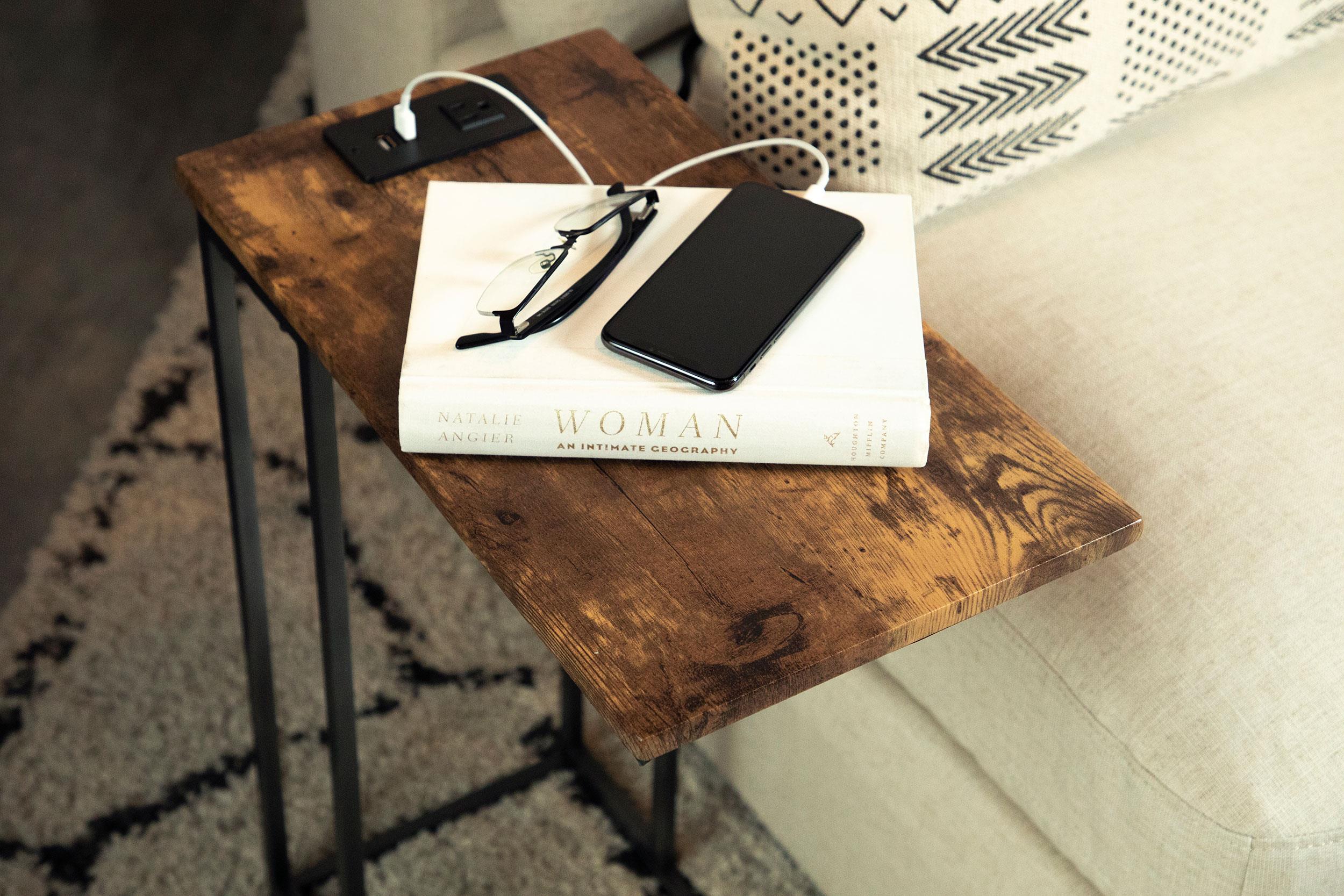 Rudy C-Shaped Side Table with Power Outlet Antique Brown