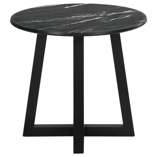 This coffee table set features a black marble-like top and sturdy solid rubberwood bases in a bold black finish. The high-pressure laminate surface offers the elegance of natural stone with exceptional durability and easy maintenance. The sleek, modern design of these occasional tables blends clean lines and sculptural bases, making them a perfect addition to contemporary living rooms. This set provides both style and functionality, serving as an elegant focal point for your space.