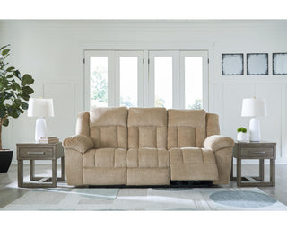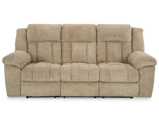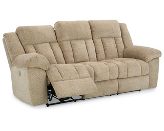 Big, bold comfort. Game time and movie nights meet their match with this power reclining sofa. Made for ultimate indulgence, an extra-deep seat encourages you to sit back and bliss out. Customize the recliner and headrest to find your ideal viewing position with effortless one-touch controls. And with plush upholstery in a trendy hue, you won’t need to sacrifice style for cozy seating.