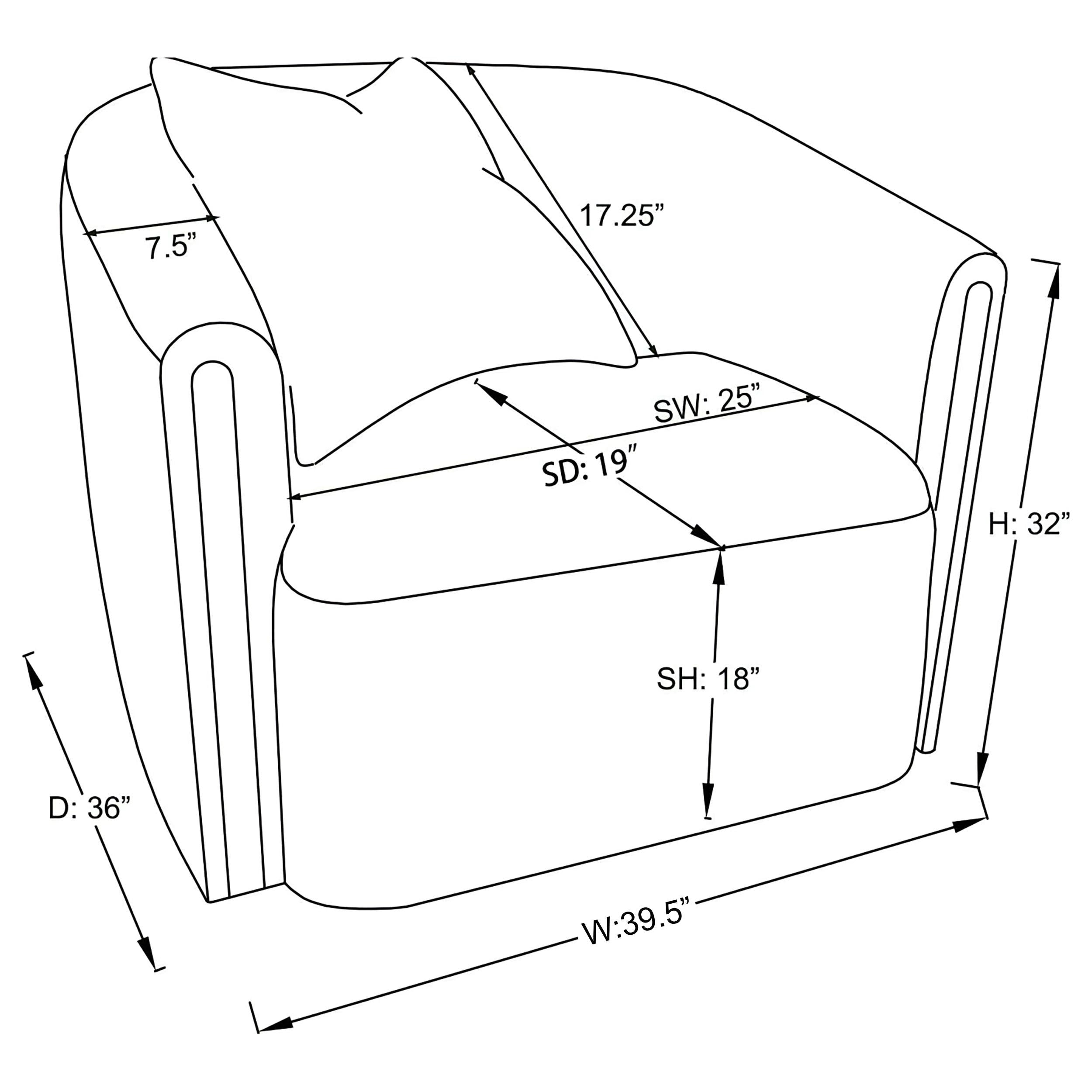Thoughtful design highlights a modern armchair. Designed for comfort, it boasts sinuous springs and pocket coils paired with attached foam cushions for a sleek look. Its modernized shelter silhouette and sloping arms create an inviting ambiance, perfect in a living room or den. The armchair is complete with latte-colored chenille upholstery with a slight wavy pattern for a touch of texture and depth. A single accent pillow adds to a welcoming look with a feather blend fill.
