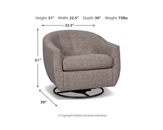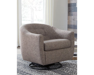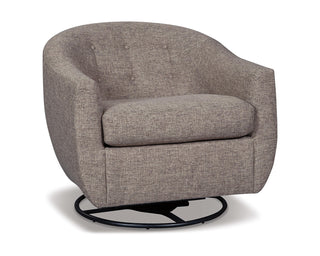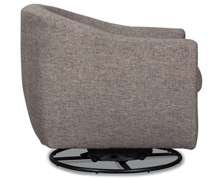 Take a turn for the better with this upscale swivel glider accent chair. Upholstered in a richly woven taupe fabric, this contemporary beauty with tufted barrel back provides a smooth 360-degree swivel that’s such a nice twist.