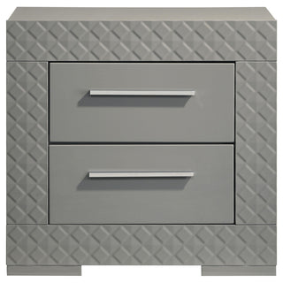 Ives 2-drawer Nightstand Bedside Table Grey High Gloss
