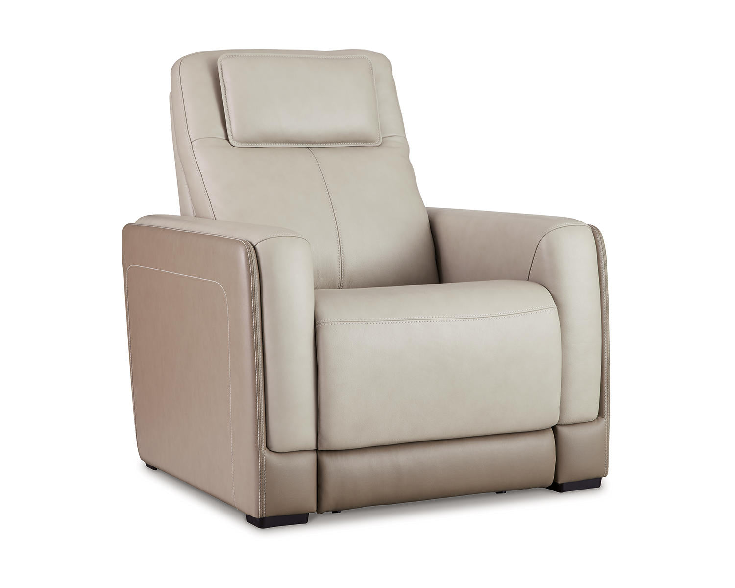 Double down on sleek style with this power recliner. It has a streamlined, space-conscious appeal, with two-tone upholstery in neutral hues creating subtly striking visual intrigue. And with one-touch reclining, an adjustable headrest and wireless charging, this piece combines contemporary function and fashion into a single clean-lined design.
