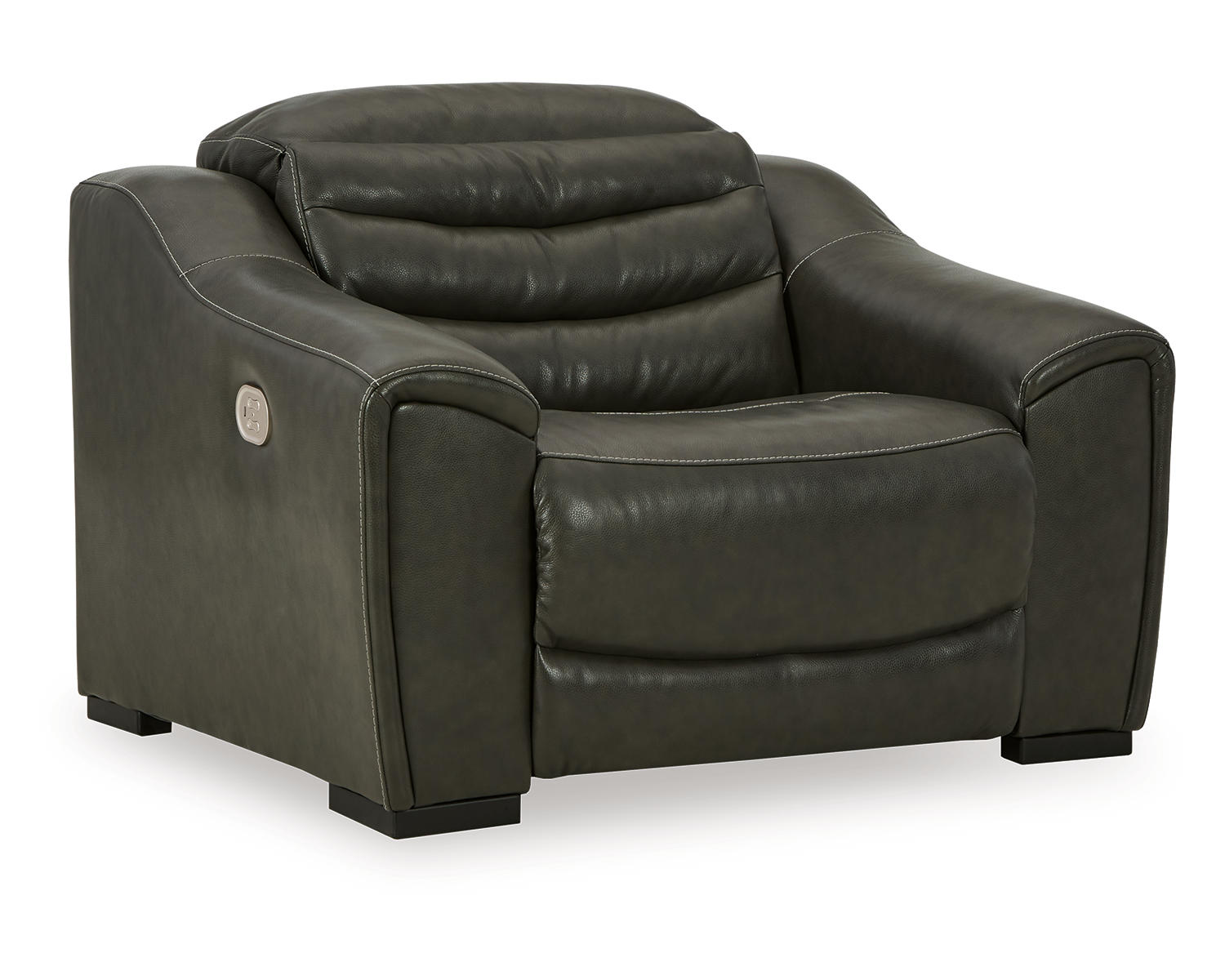For those seeking to curate a living room retreat with superior comfort and a contemporary aesthetic, this sleekly designed power recliner will become your favorite source of at-home serenity. Rest on expertly matched leather and faux leather upholstery, and use the one-touch power control to recline and adjust the headrest with ease. As you recharge after a long day, your devices can too with USB charging. This recliner is visually enticing in a luxe dark gray, with slope track arms and stitched detailing on the back to enhance its modern appeal.