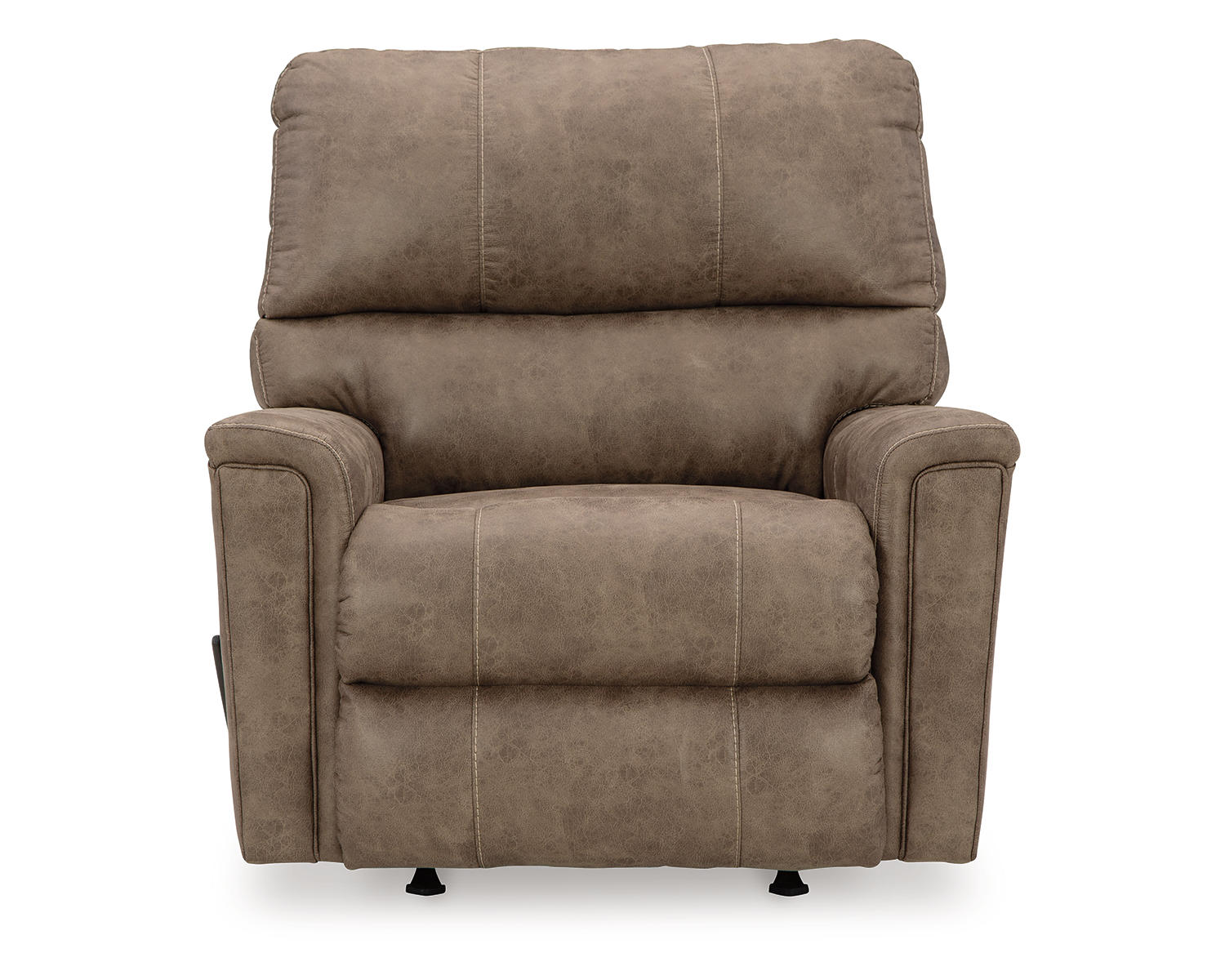 This decidedly modern recliner proves less is more, bringing simply inviting style to your living room. Take the guesswork out of decorating—its warm faux leather has a universal appeal, pairing with casual and contemporary aesthetics alike. And with the recliner's easy one-pull reclining, all you need to do is kick back and enjoy the comforts of home.