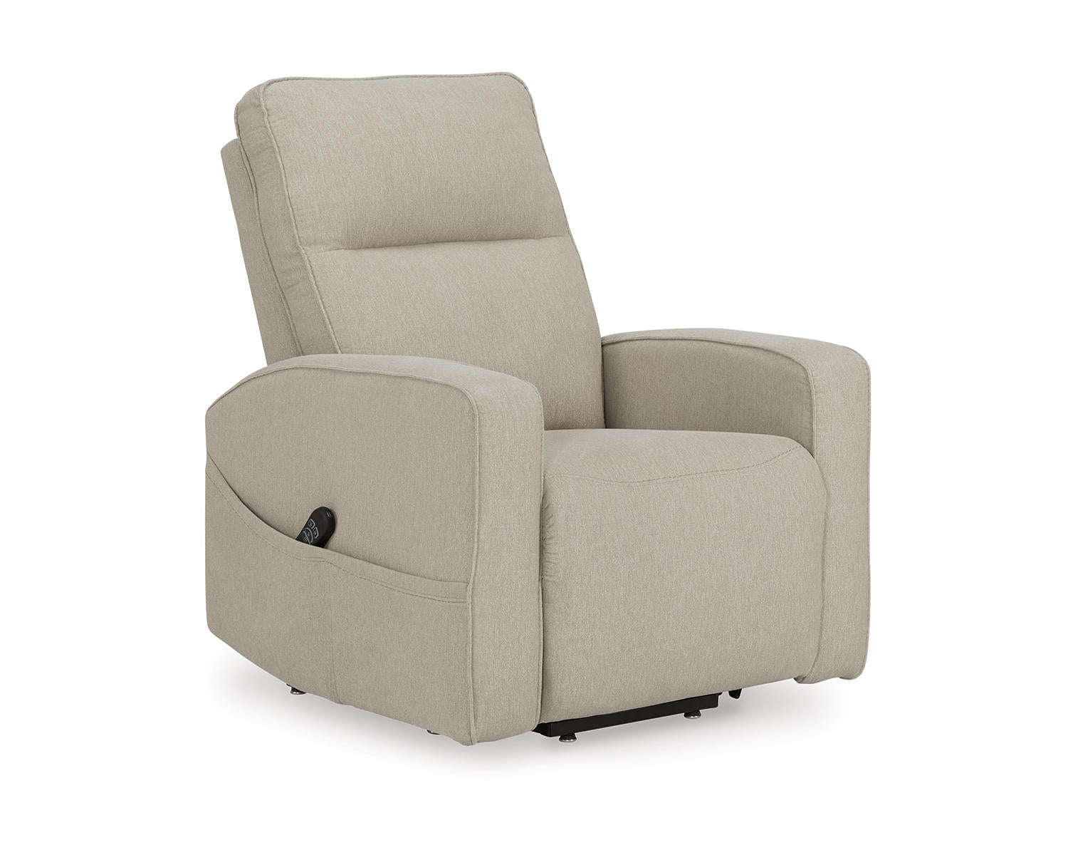Contemporary single motor lift recliner with rack arm and Heat & Massage. Featuring the Next-Gen Nuvella true performance fabric that offers high UV protection while being bleachable as well as cleanable. This is excellent for a high traffic areas.