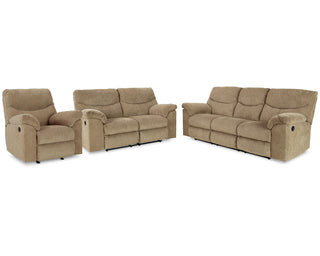 Sincere in its styling, this reclining seating package invites a relaxed sensibility into your space. Its beige upholstery has a universal appeal, with pull-tab reclining making it easy to kick back in comfort. Providing high-quality functionality at an affordable price, this set marries well with a myriad of design aesthetics.