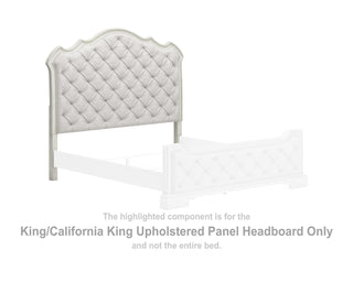 This king/California king upholstered panel headboard is made with hardwood solids, spruce veneer and MDF substrates. Pairs with other items in the series to make a bed kit.