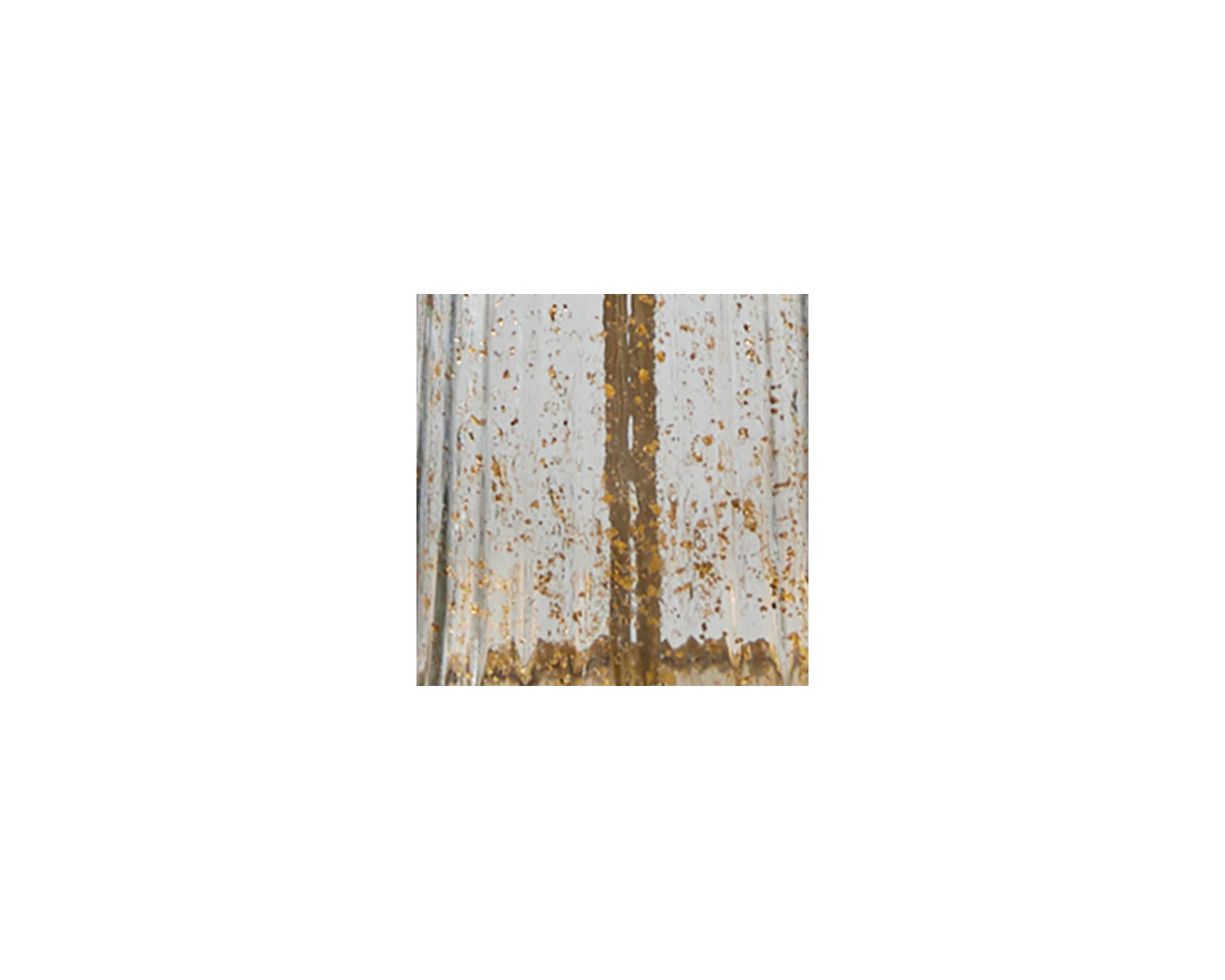 The lighter side of traditional style. We love how the sheer simplicity of this lamp's clear fluted glass infused with subtle goldtone flecks creates a beautiful blend of timeless design. An instant classic, it's perfect for a cozy reading nook or a stylish living space.