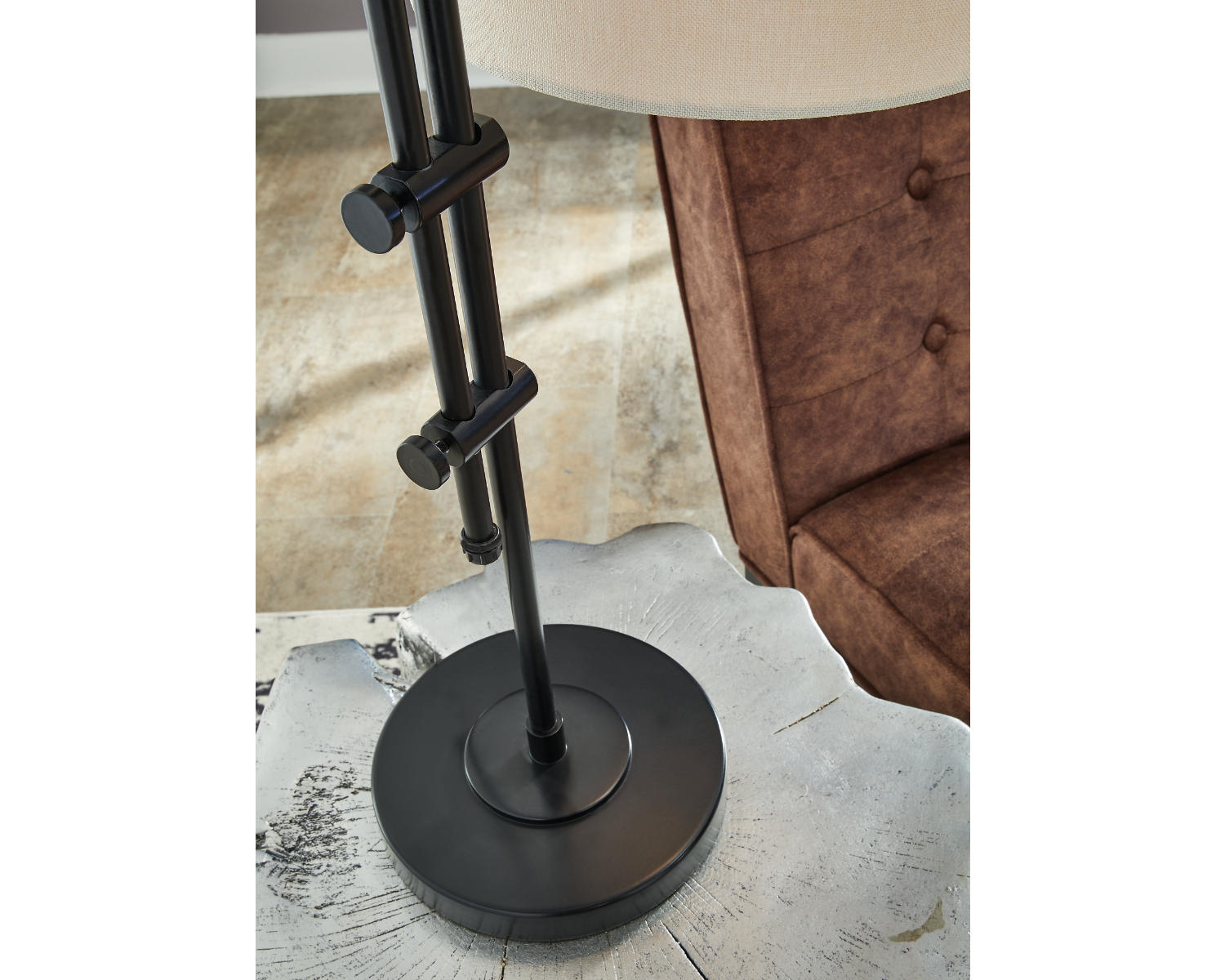 Black finished metal accent lamp. Drum hardback shade. Adjustable arm. On/off switch. (1) E26 socket, type A bulb recommended - 60 watts max or 13 watts max CFL. Matching lamps - L206042, L206044 and L206041.