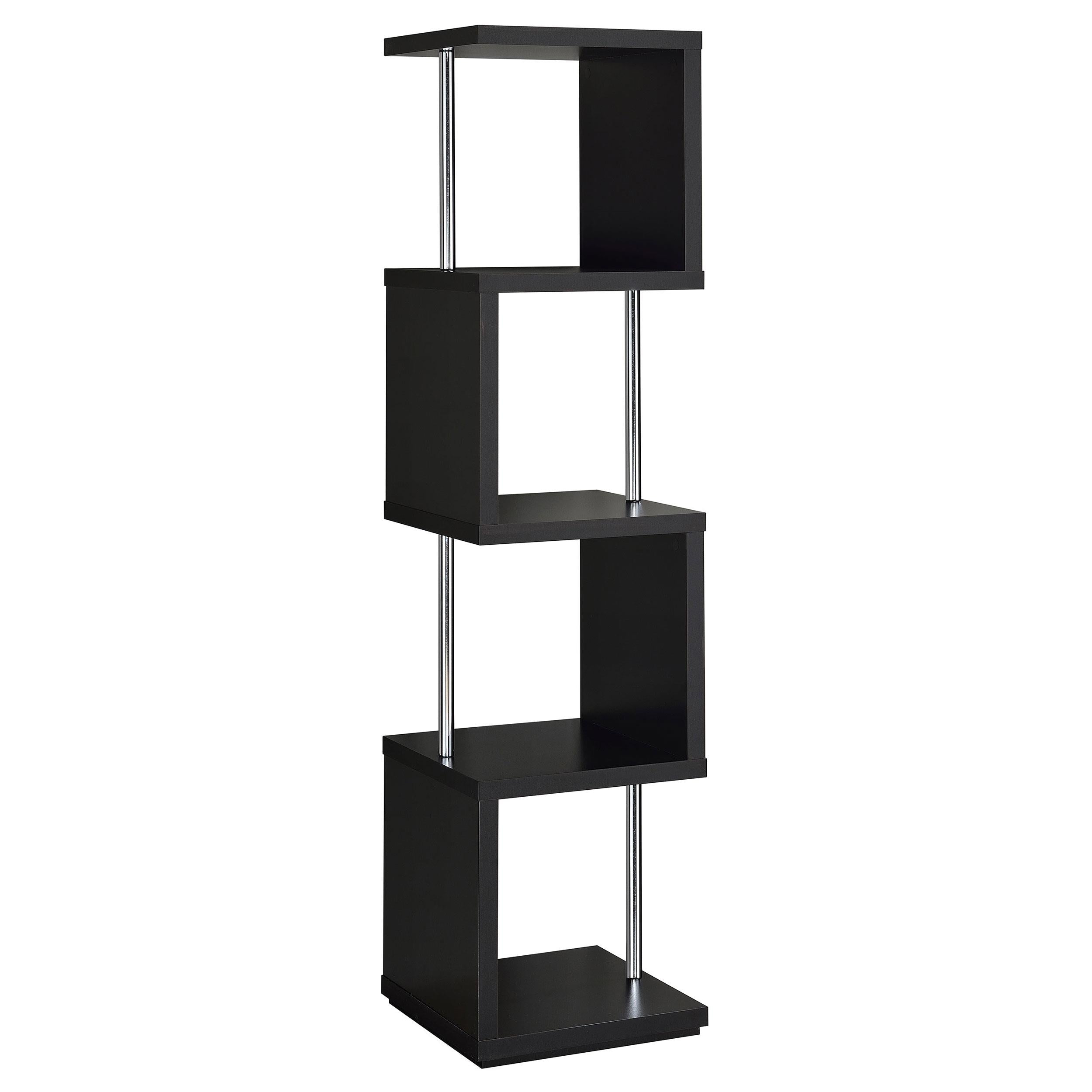 Go with the flow in a modern space with an edgy, artistic look. This four-tier bookcase is a great option for a compact space. Enjoy a modular, geometric silhouette and a choice of finishes. Steel supports reinforce shelving that hosts books and decor. Choose from finishes that intensify the attitude of your custom space.