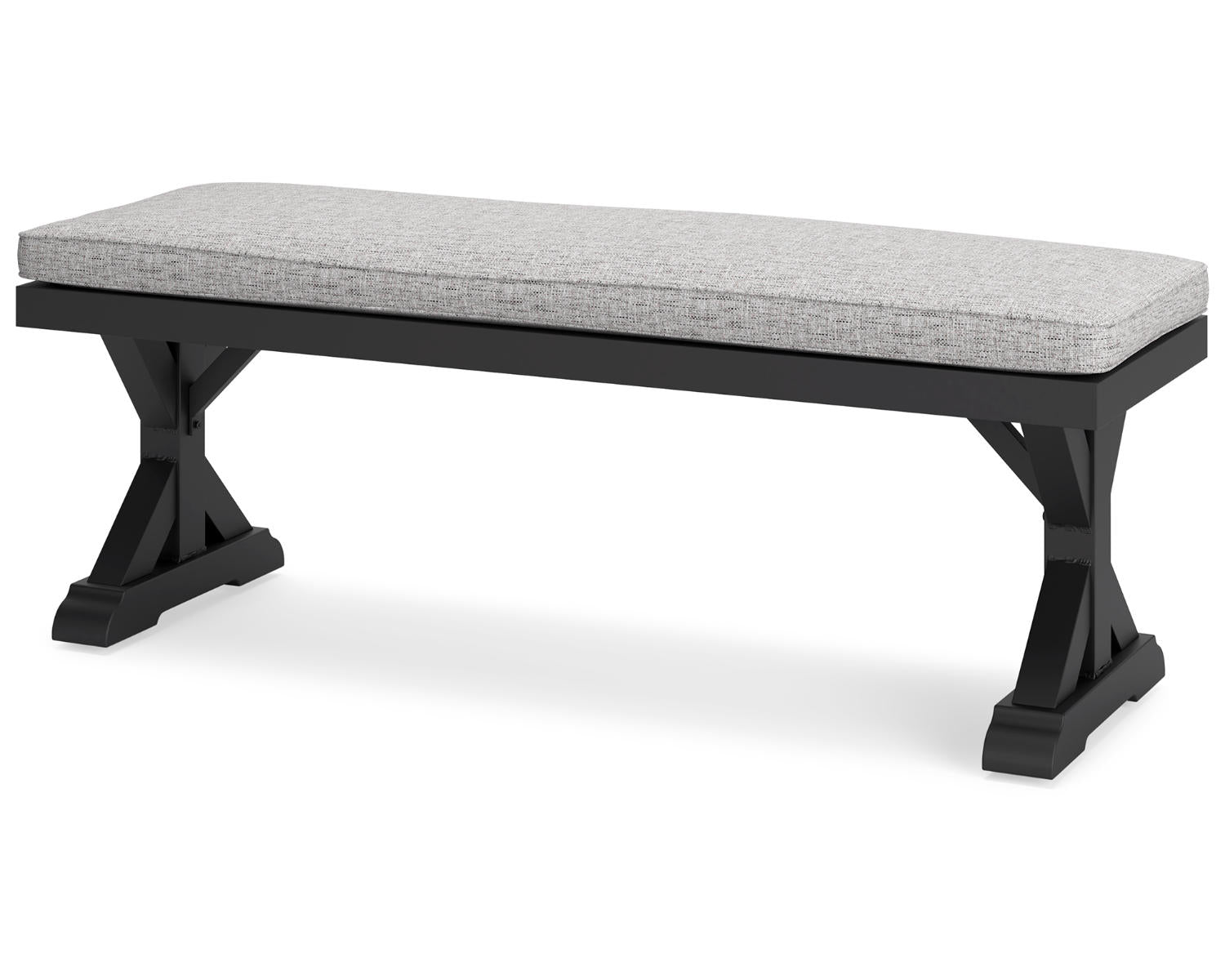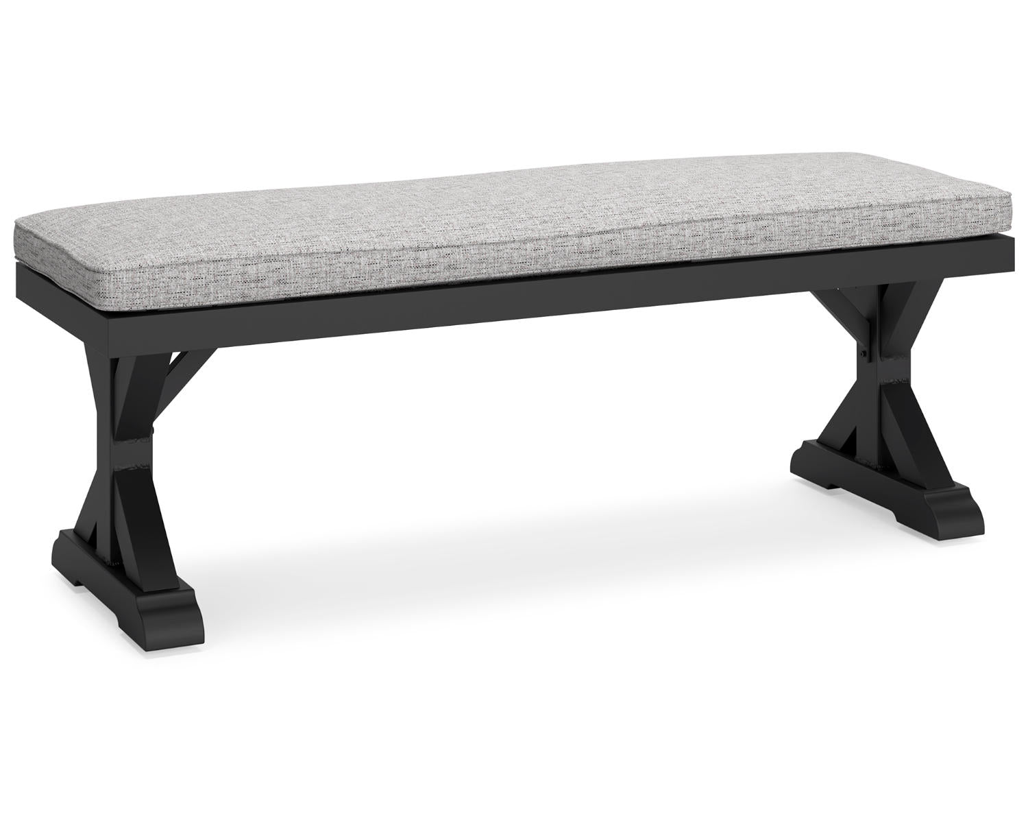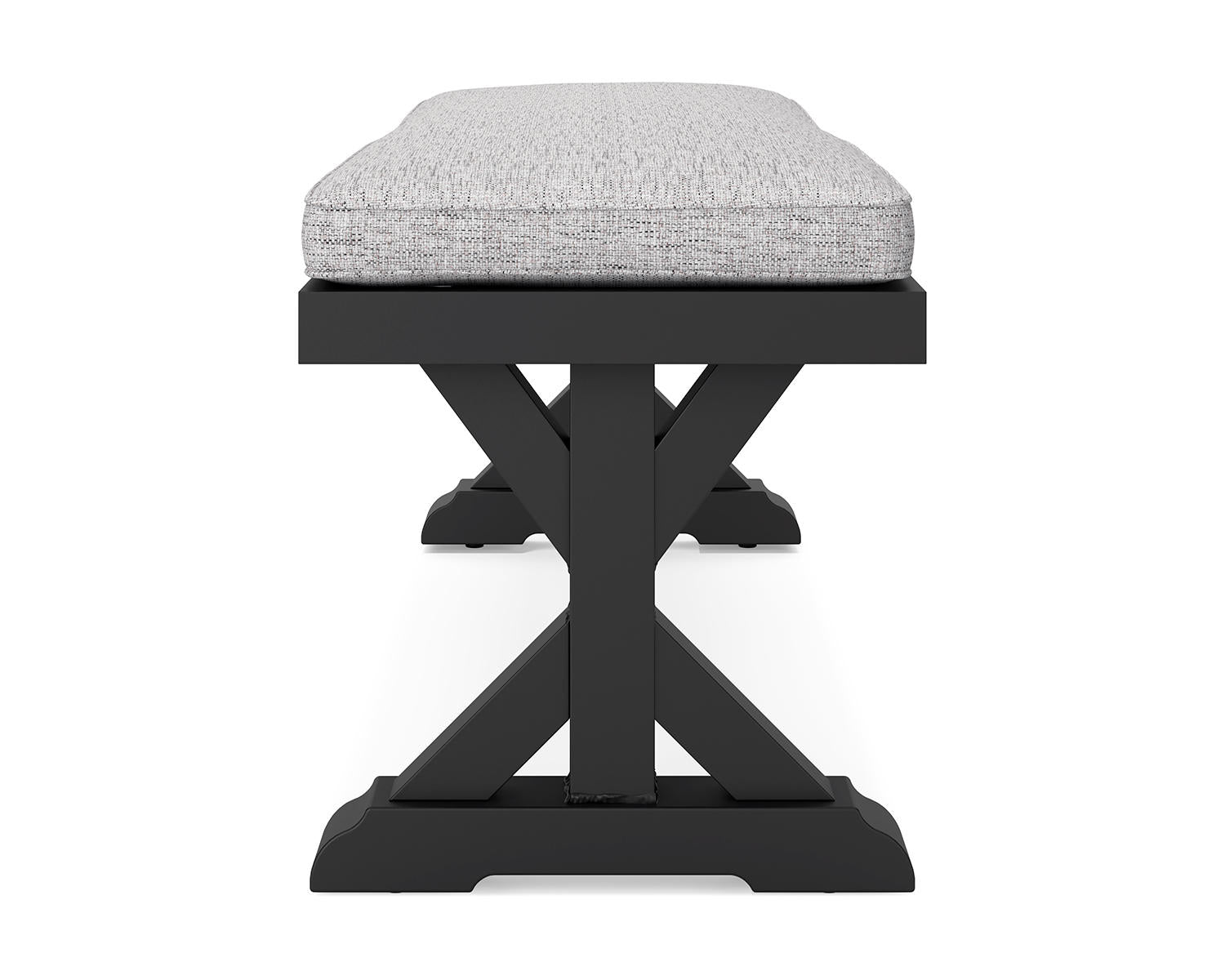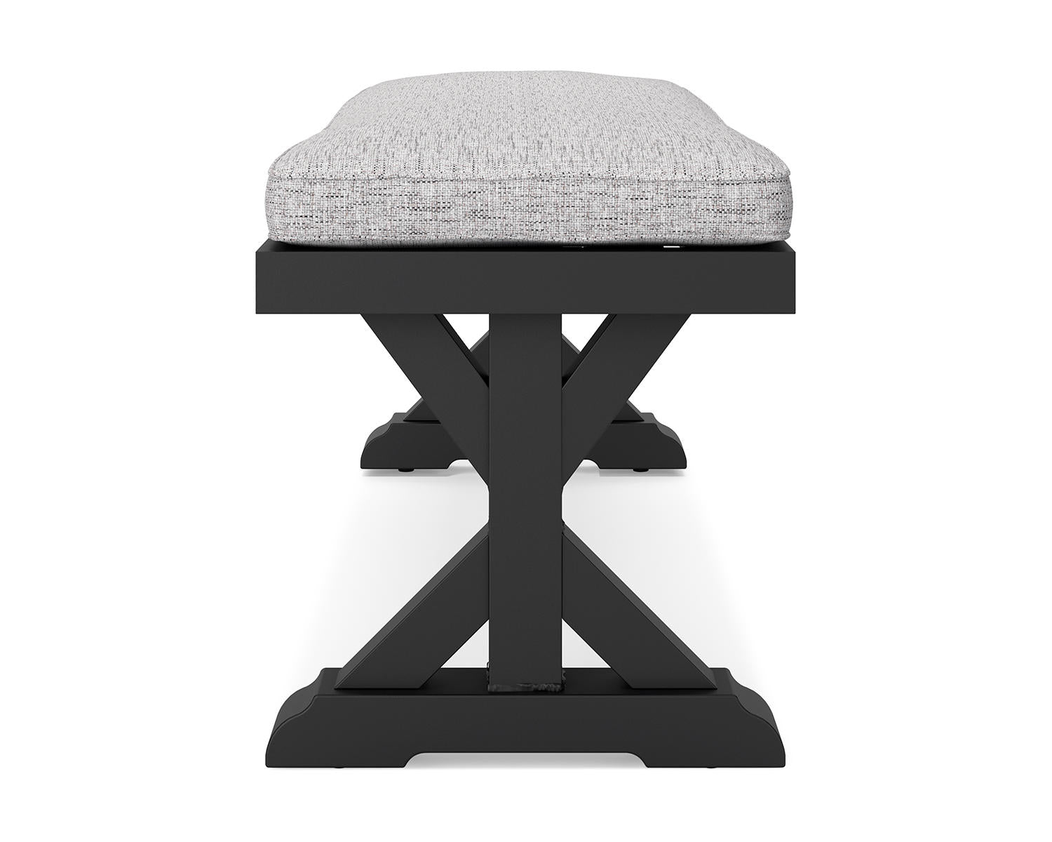 Sporting an easy-on-the-eyes elegance, this bench with cushion elevates the art of alfresco living. Beautiful and durable enough for indoor and outdoor use, this casually cool seating entices with X-leg farmhouse styling and a plush, removable cushion wrapped in high-performing Nuvella® fabric that’s a breeze to keep clean.